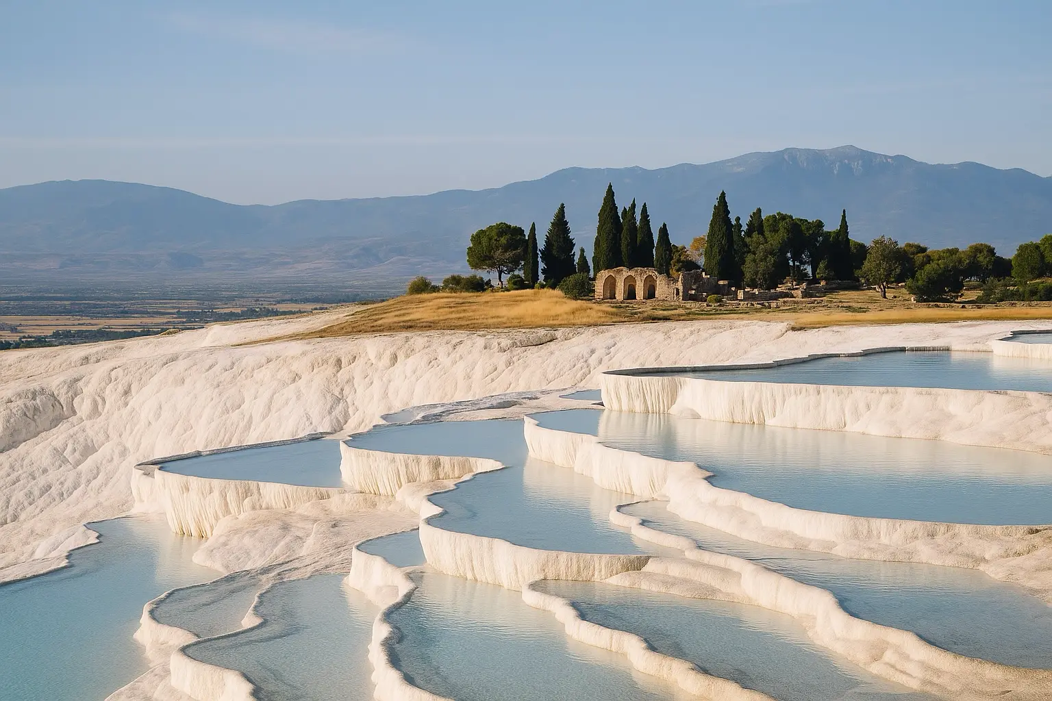 W programie zwiedzanie rzymskiego amfiteatru, imponujących grobowców skalnych oraz uszkodzonego sarkofagu św. Mikołaja w kościele w Myrze. Następnie udamy się w kierunku Pamukkale, które swą popularność zawdzięcza pięknym widokom białych tarasów, utworzonym przez zastygnięte, gorące, wapienne źródła (Lista Dziedzictwa Kultury i Natury UNESCO). Wieczorem przyjazd do hotelu w okolicach Pammukkale, zakwaterowanie (1 noc), obiadokolacja, nocleg. Szczegóły Mszy św. do potwierdzenia.